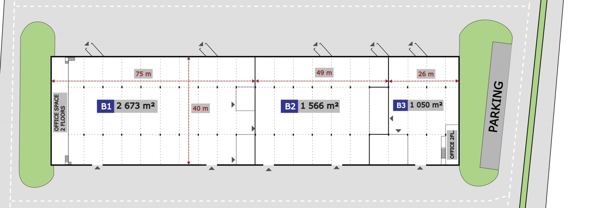 B1 2772 m2 powierzchni produkcyjnej + 330 m2 powierzchni biurowo-socjalnej.